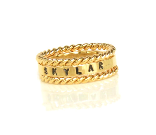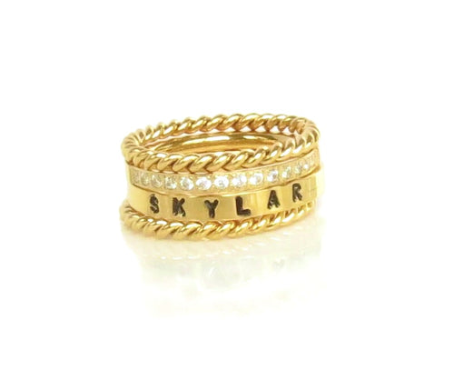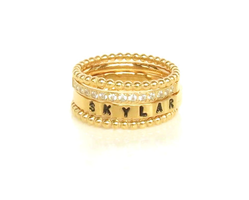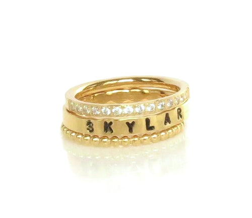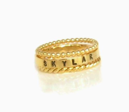 Gold Stackable Name Ring, Gold Stacking Rings, Engraved Ring, Childrens Name Ring